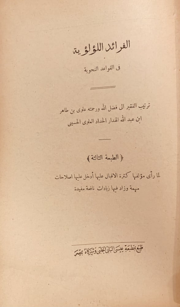 9643-الفرائد اللؤلؤية في القواعد النحوية /علوي طاهر