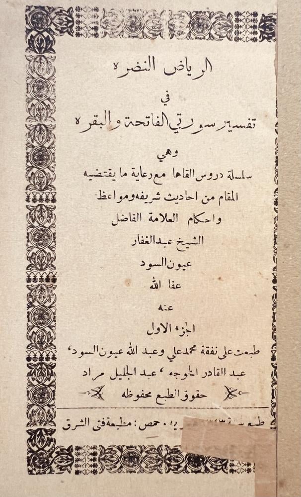 22393-الرياض النضرة في تفسير سورتي الفاتحة والبقرة 3/1 عبدالغفار عيون السود