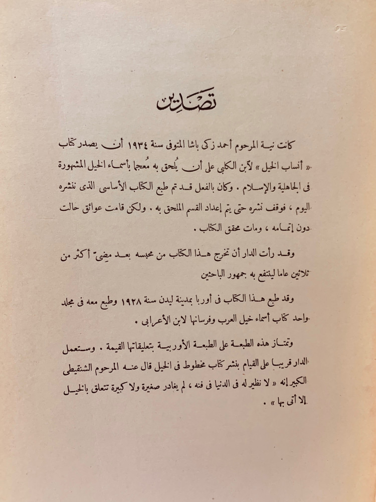 انساب الخيل في الجاهلية والاسلام واخبارها