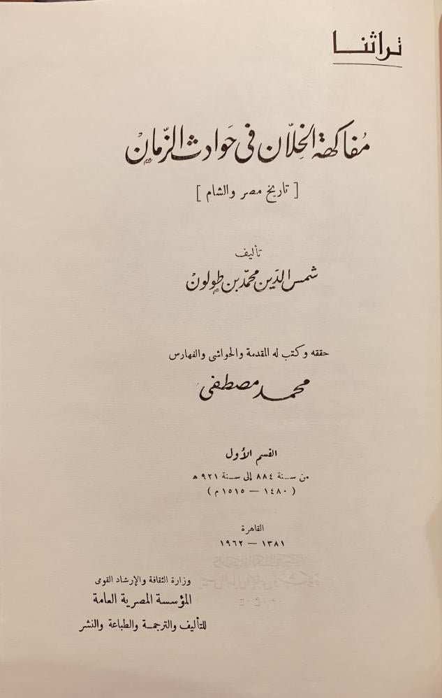 مفاكهة الخلان في حوادث الزمان تاريخ مصر والشام2/1