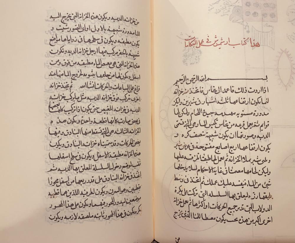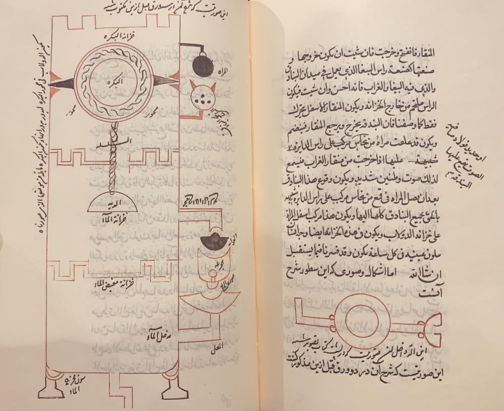 صورة مخطوط ارخميدس في عمل البنكامات الماكينات الهيدروليكية والساعات
