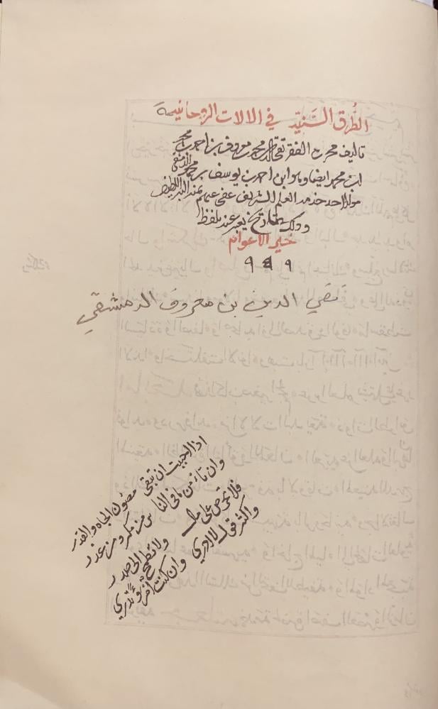 صورة مخطوط الطرق السنية في الالات الروحانية