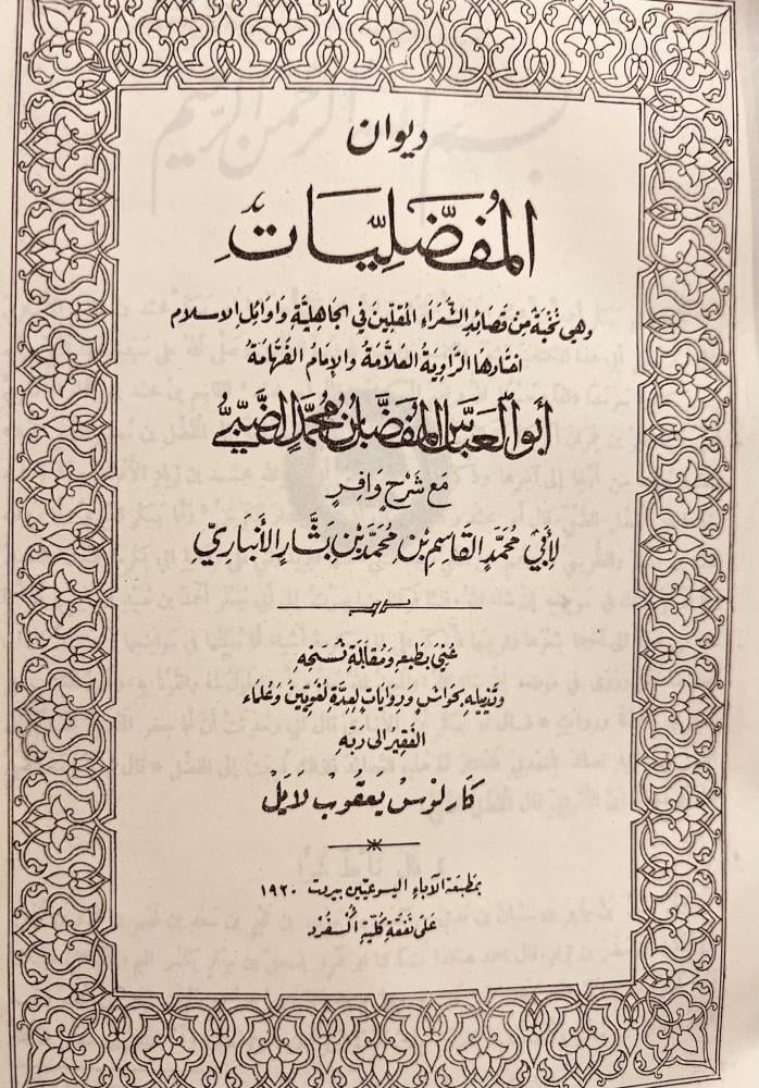 407-ديوان المفضليات/المفضل الضبي حجم كبير هامش/الانباري