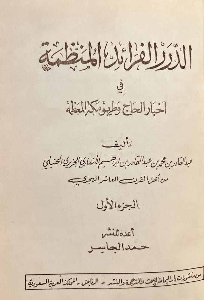 الدرر الفرائد المنظمة في اخبار الحاج وطريق مكة المعظمة 3/1