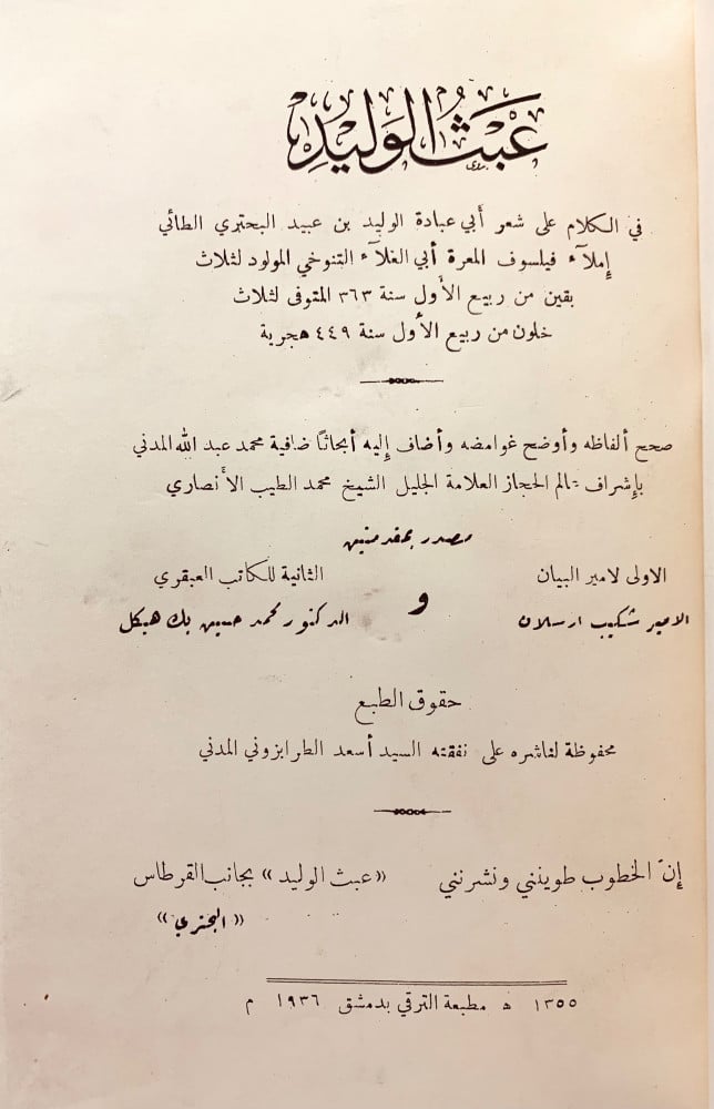 مطبعة لجنة التاليف والترجمة القاهرة 1937