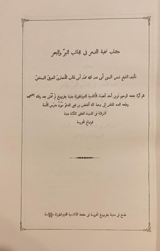 نخبة الدهر في عجائب البر والبحر ا/ابي طالب الانصاري