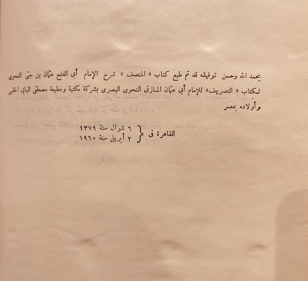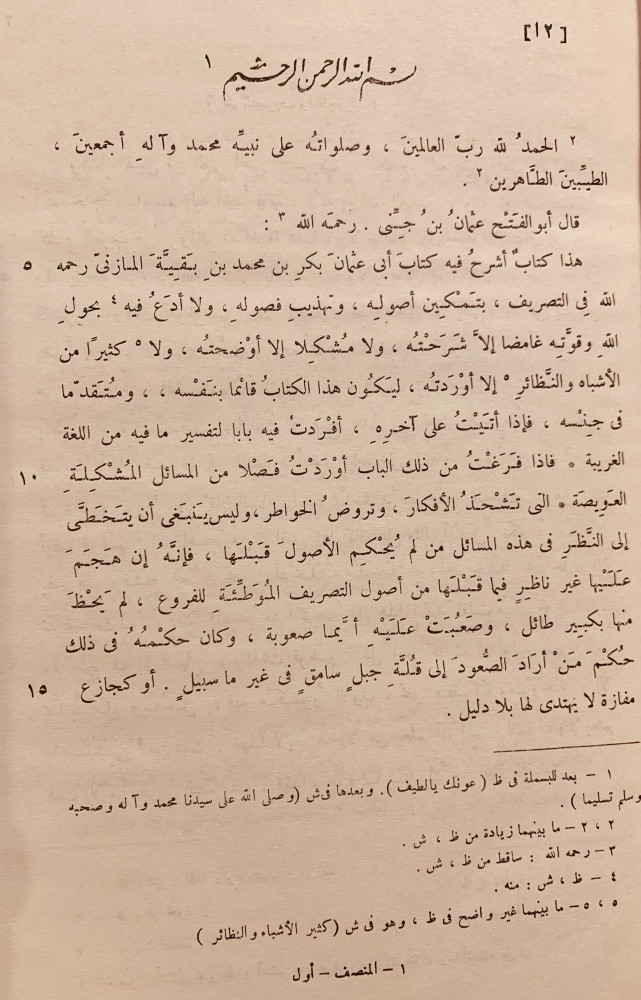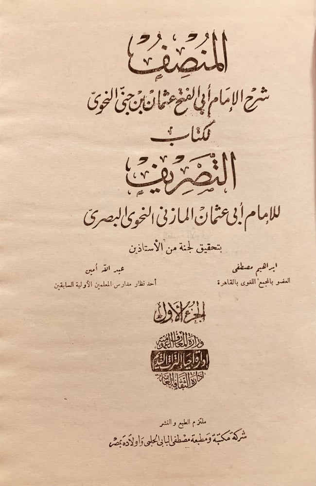 المنصف شرح الامام عثمان بن جني لكتاب التصريف لابي عثمان المازني النحوي 3/1