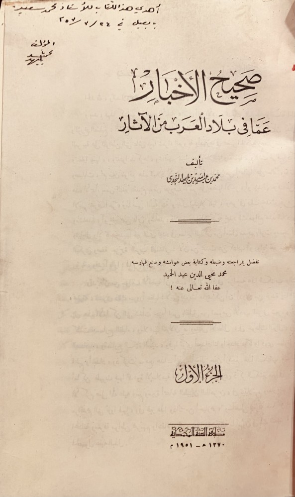 صحيح الاخبار عما في بلاد العرب من الاثار 4/1 مجلدين