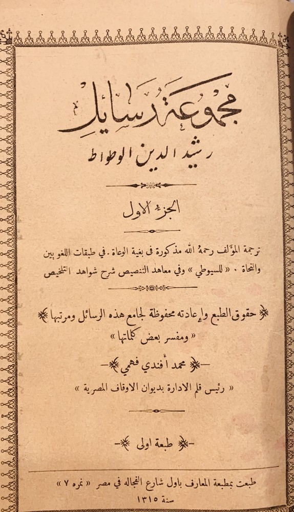 مجموعة رسائل رشيدالدين الوطواط2/1 مجلد واحد