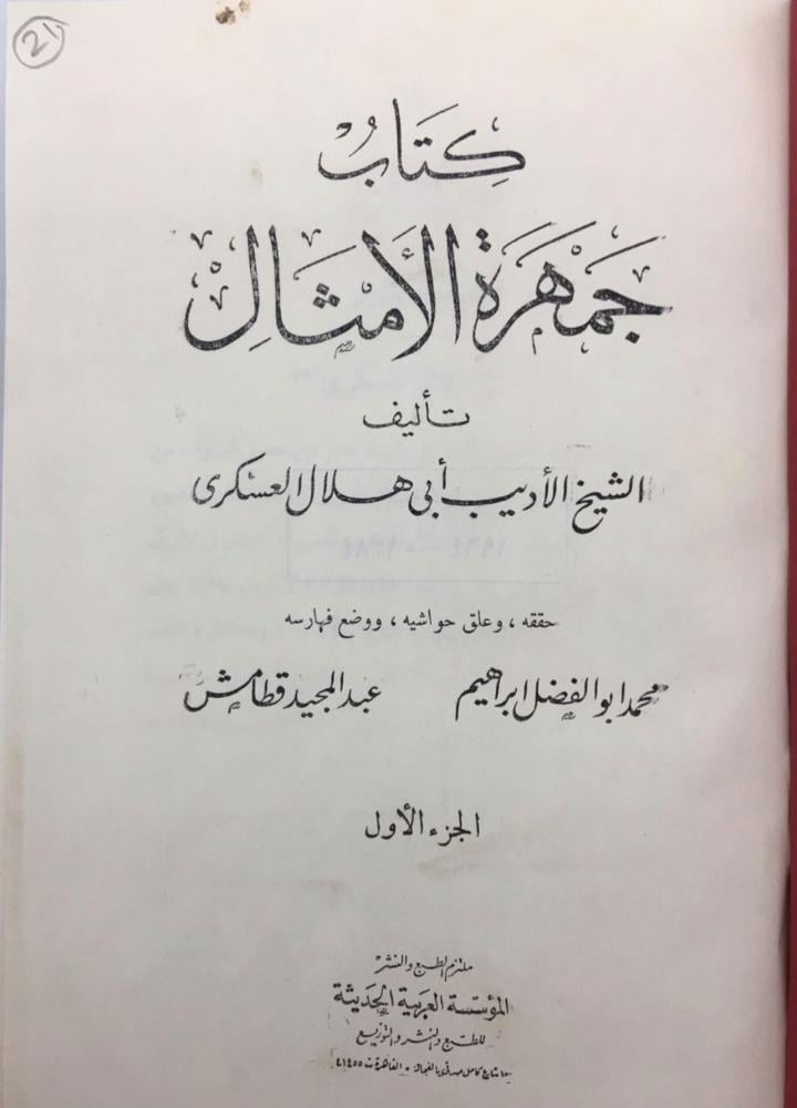 1283- جمهرة الامثال 2/1ا-ابي هلال العسكري