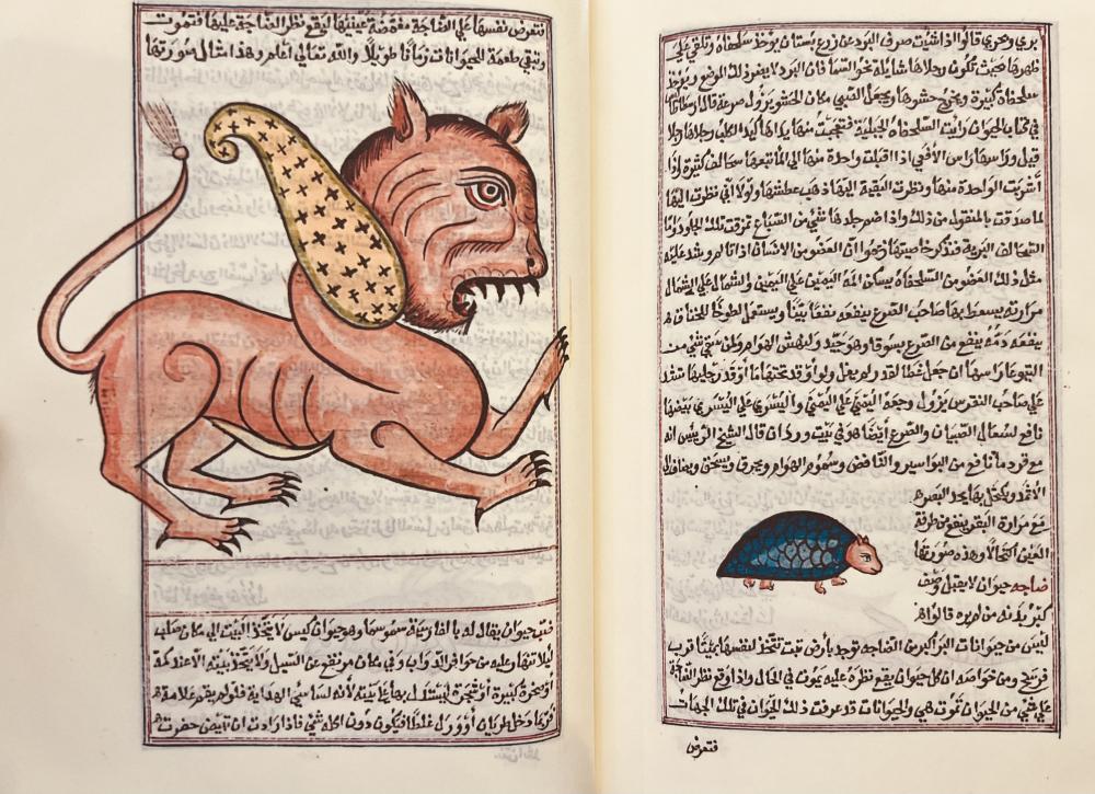 396-صورة مخطوط عجائب المخلوقات وغرائب الموجودات تجليد هامش /الغزويني