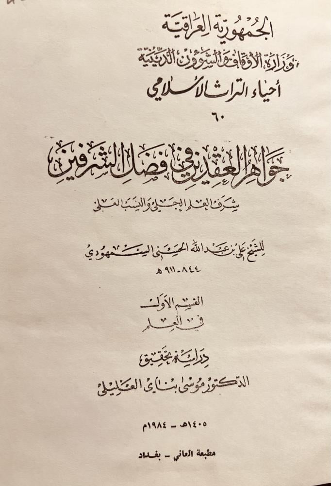4322-جواهر العقدين في فضل الشرفين 2/1 علي السمهودي