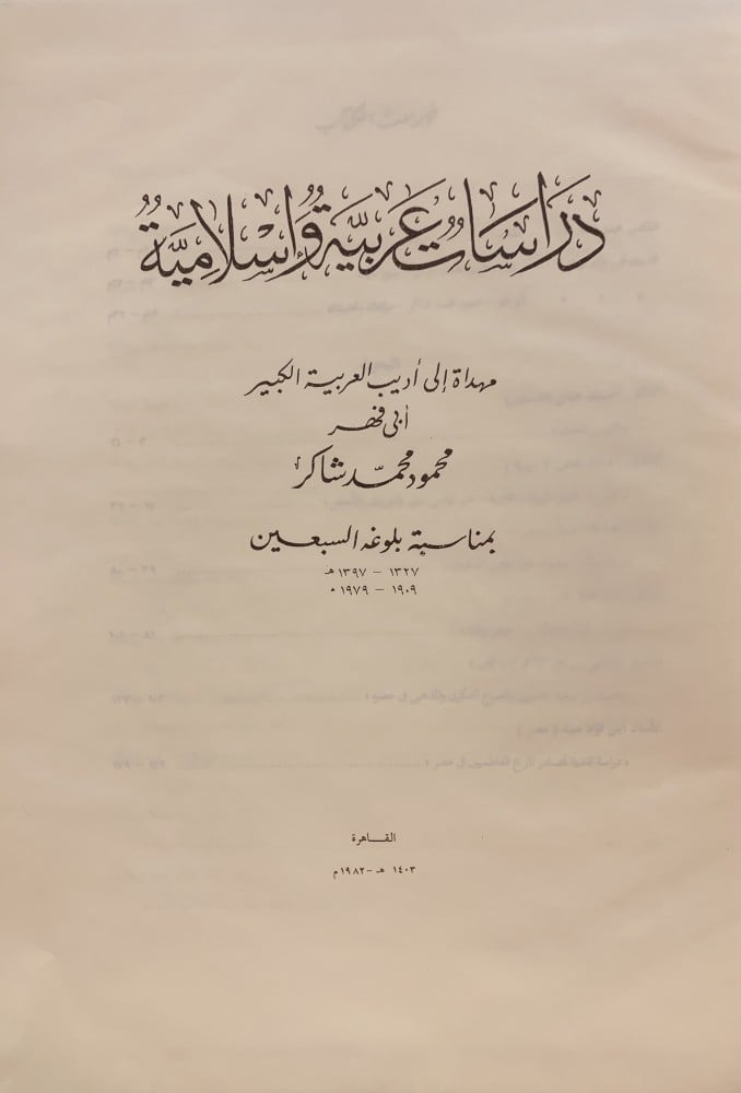 14741- دراسات عربية واسلامية/ محمود شاكر